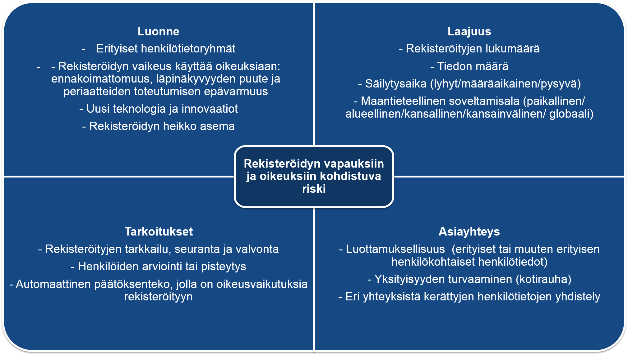 - mitä rekisteröidyn vapauksia ja oikeuksia käsittely voi vaarantaa ja